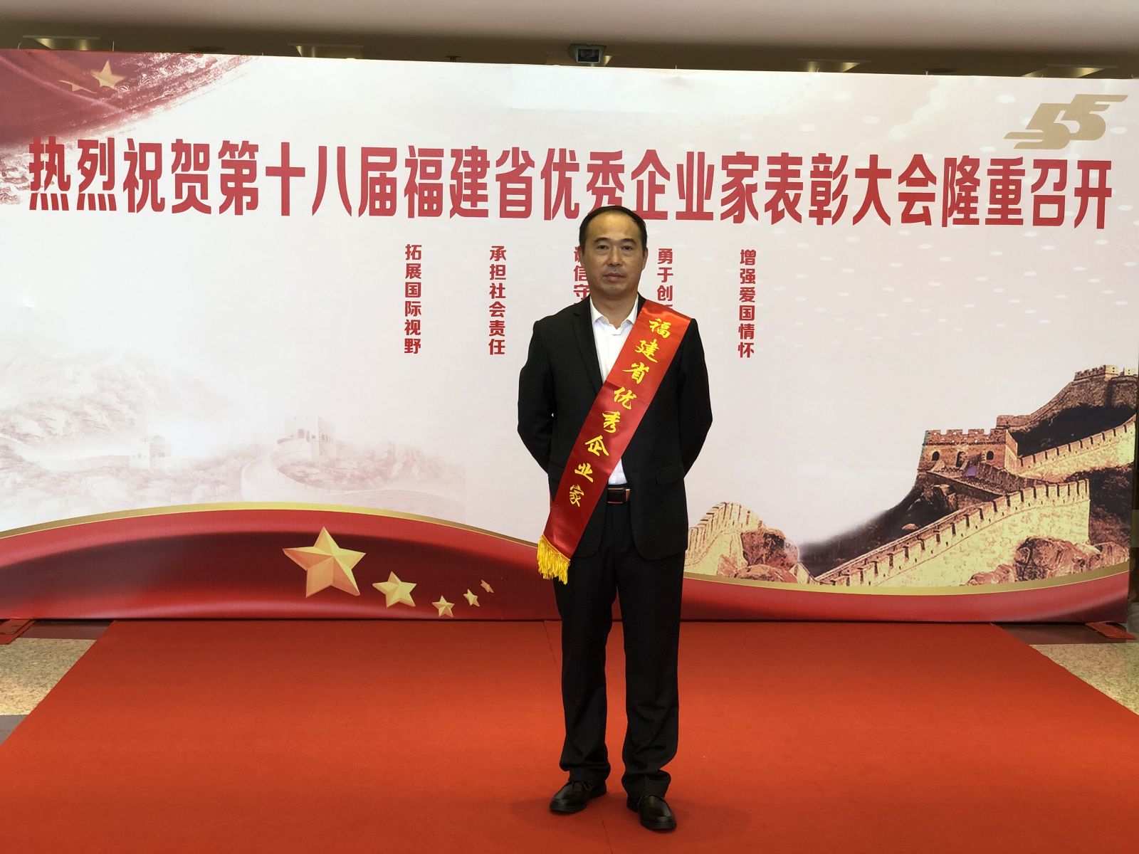 2020年9月29日,第十八屆福建省優(yōu)秀企業(yè)家表彰大會(huì)暨省企聯(lián)2020年年會(huì)在福州舉行。大會(huì)對(duì)134名福建省優(yōu)秀企業(yè)家進(jìn)行表彰。副省長(zhǎng)鄭建閩,省級(jí)老同志黃瑞霖、黃文麟、李川、李祖可出席大會(huì)。公司董事長(zhǎng)兼總經(jīng)理陳建華當(dāng)選為本屆優(yōu)秀企業(yè)家。